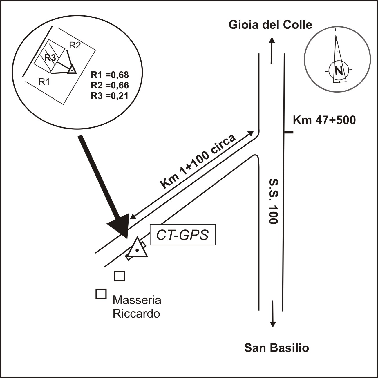 Centrino della Regione Puglia, infisso su soletta in cemento nei pressi del muro di recinzione della Masseria Riccardo.