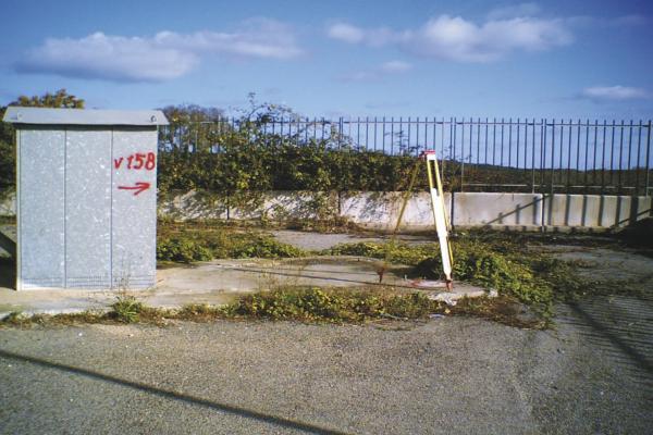 | materializzazione | Centrino della Regione Puglia, infisso su basamento in cemento della Cabina Impianti di Irrigazione. |