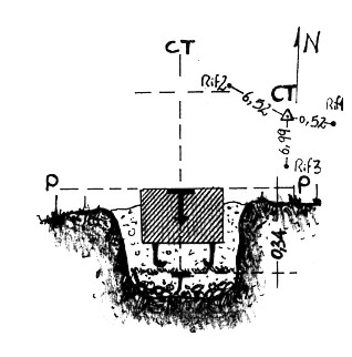 | Materializzazione | Sulla cima del monte omonimo. Centrino di superficie in blocco di cls preconfezionato con sottostante e coassiale centrino di fondo in getto di cls. Asse centrino di superficie. Sono presenti tre riferimenti costituiti da: Rif. R1 triangolo inciso su blocchetto di porfido a S.E. del CT; R2 croce incisa su roccia affiorante ad Ovest del CT; R3 centrino metallico a Sud del CT. |