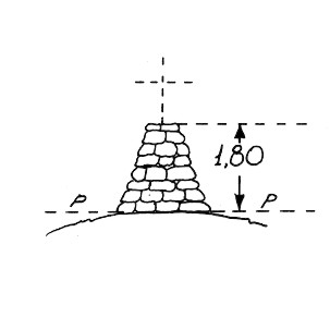 Segnale sulla gran cresta che scende da Dent d' Hereus o Monte Tabor, al limite dei comuni di Valtournenche e di Bionaz. Pilastrino in pietrame. Asse geometrico del pilastrino.