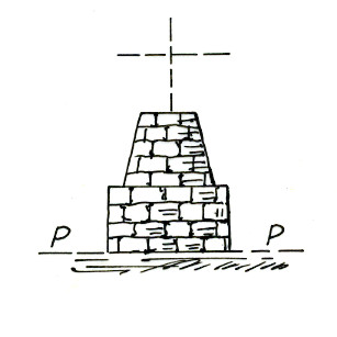 Segnale costituito da pilastro di pietrame con armatura in ferro sul limite comunale. Asse geometrico del pilastro.