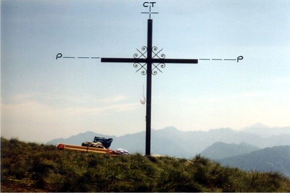 Crce in ferro posta sulla sommità del monte omonimo. Asse geometrico della croce.