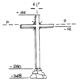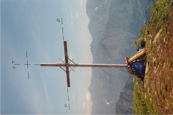 | Materializzazione | A Nord – Ovest della cima del monte omonimo. Croce in ferro su basamento in pietra. Asse geometrico della croce. |