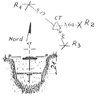 | Materializzazione | Centrino di superficie e di fondo coassiali cementati separatamente con due getti di calcestruzzo. Rierimenti: R1, R2, R3 croci incise su roccia. |