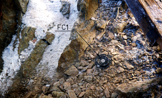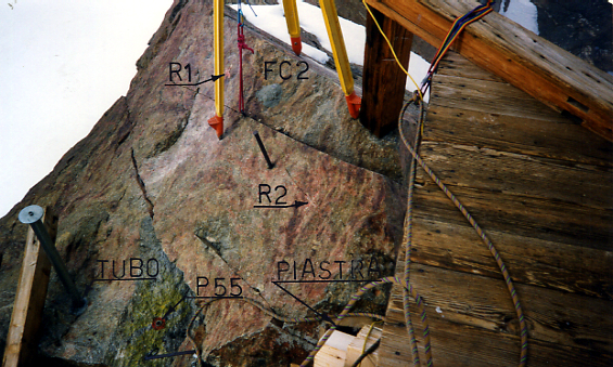 Segnale su Punta Gnifetti (Monte Rosa) presso la Capanna Regina Margherita. Punto non materializzato; FC1 centrino da CT: E= 1.412.957,72 N= 5.086.588,38; FC2 centrino GPS "C" E= 1.412.959,64 N=5.086.592,46. Riferimenti:R1,R2,R3,R4,R5 croci incise su roccia; P 55: bullone forato (svizzero); TUBO CH: tubo metallico (svizzero).