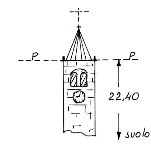 Campanile della chiesa parrocchiale di Brusson. Asse geometrico del campanile.