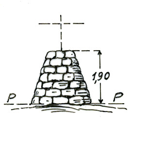 Segnale sul contrafforte che divide la Comba di Vessona dalla Comba di Montagnaia, costituito da pilastro in pietrame. Asse geometrico del pilastro.