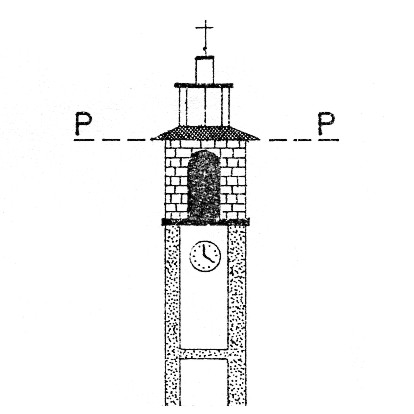 | Materializzazione | Campanile della chiesa parrocchiale. Asse geometrio del campanile. |