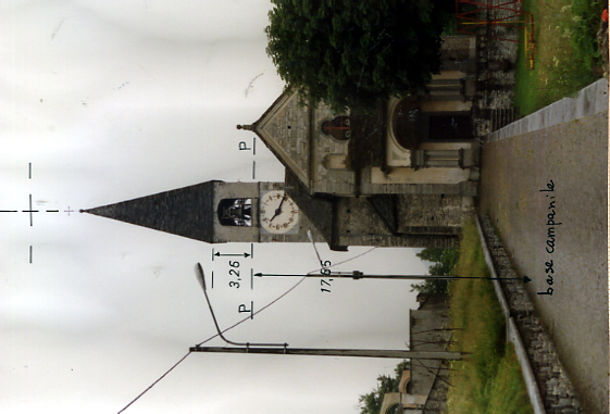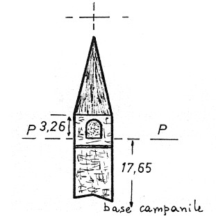 Asse geometrico del campanile della chiesa parrocchiale (Sant'Ambrogio) di Coimo, distaccata dall'abitato, presso il cimitero e sovrastante il bivio con la strada della Val Vigezzo.