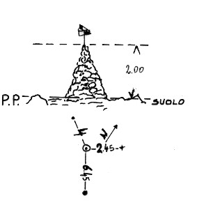 | Materializzazione | Segnale sulla sommità allungata del Monte Pelato, sovrastane da S. O. le Terme di Bognanco e sottostante Cima Camughera. Piombino cementato alla sommità aguzza di una roccia seminterrata nel punto più alto, più largo e centrale della sommità del monte. Sovrastante piramide di pietrame a secco. |