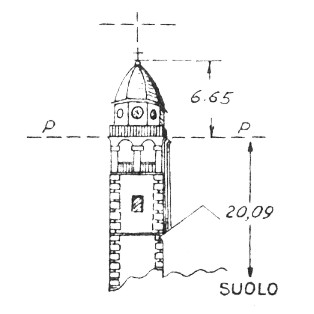 Campanile della chiesa. Asse geometrico del campanile.