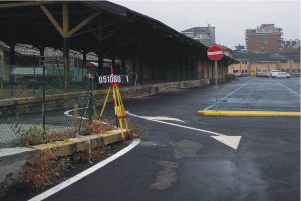 | materializzazione | Centrino metallico posto sul basamento di pietra nella zona più interna a nord del parcheggio pubblico "Metropark". |
