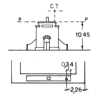 Bullone a testa esagonale cementato sul parapetto, lato destro, del serbatoio dell'acquedotto, posto sul colle. Il pilastrino costruito in mezzeria non è il vertice IGM.