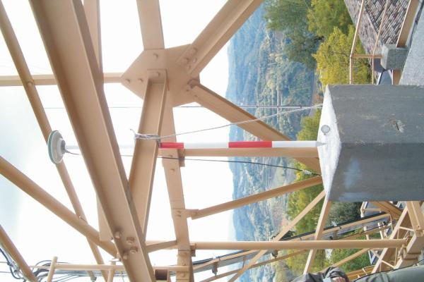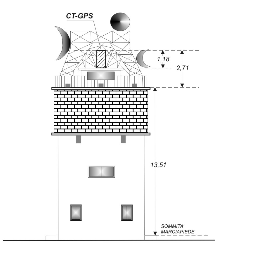 Centrino metallico di fuori centro infisso in asse al pilastrino in muratura di dimensioni 0,40×0,40 m. posto sul tetto del serbatoio idrico.