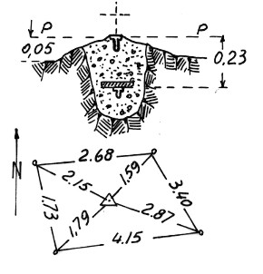 | Materializzazione | Segnale sulla cima rocciosa situata ad Est della vetta più alta del monte. Centrini di superficie e di fondo. Riferimenti: 4 centrini. |