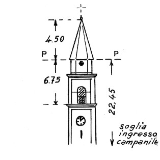| Materializzazione | Campanile della chiesa parrocchiale. Asse geometrico del campanile. |