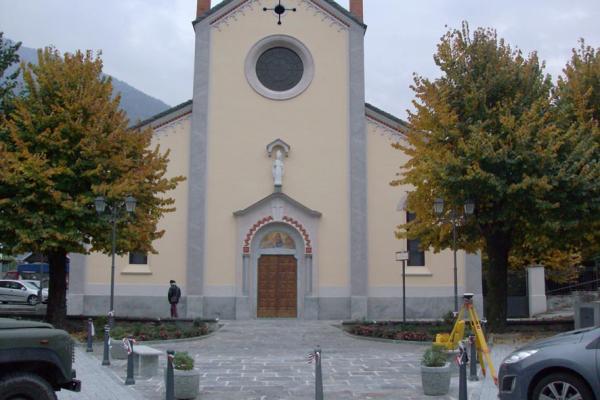 Centrino universale infisso sulla superficie della pavimentazione del piazzale Don Giovanni Mora antistante la chiesa di Masera.