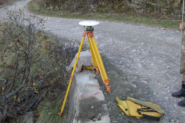 Centrino universale IGM infisso sulla faccia superiore del muro di scarpa della strada sterrata.