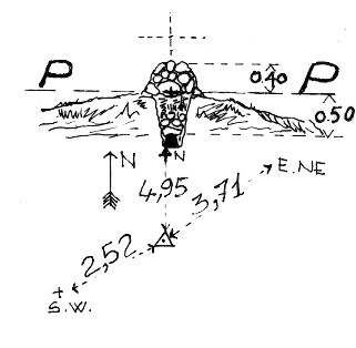 | Materializzazione | Segnale sulla cima del contrafforte che separa la valle dell'Inferno da quella di Ovaghe a N.-N.O. della frazione di Camasco. Centrino cementato ad una profondità di m 0,50 dal suolo, coassiale affiorante croce incisa su pietra. Riferimenti come da pianta. |