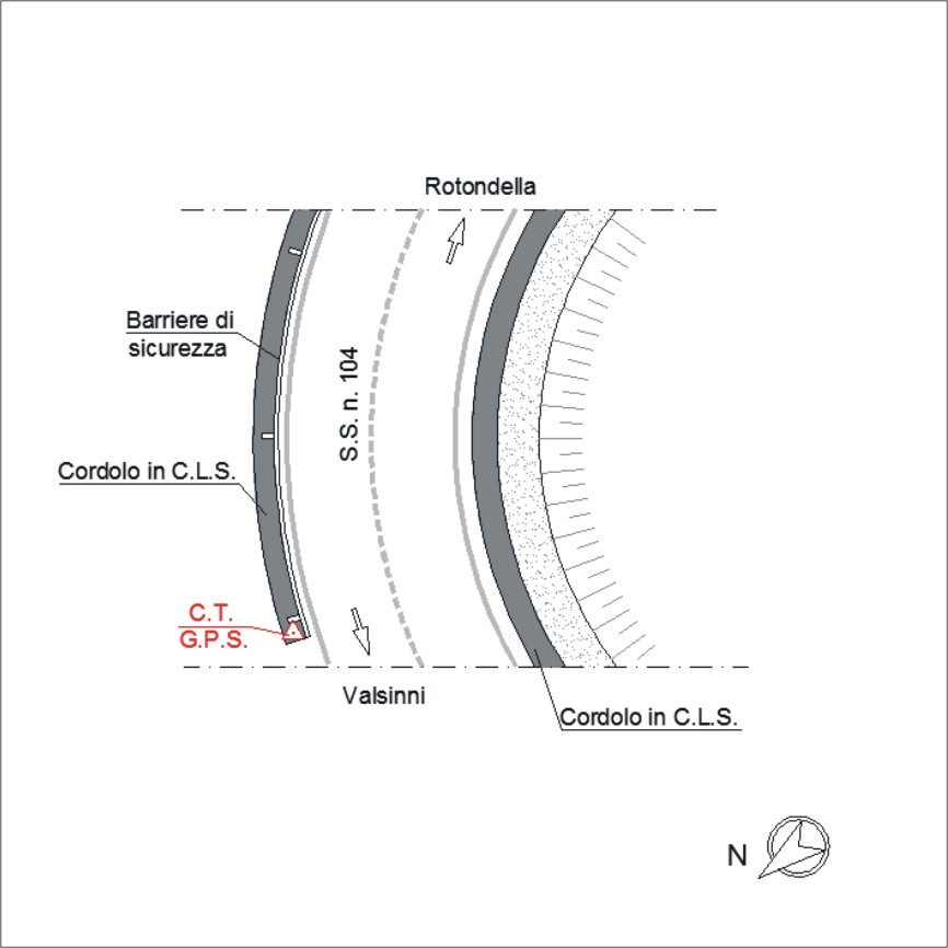 Centrino orizzontale di tipo chiodo con rondella ARPAB Regione Basilicata infisso sul cordolo con zanella in C.L.S.