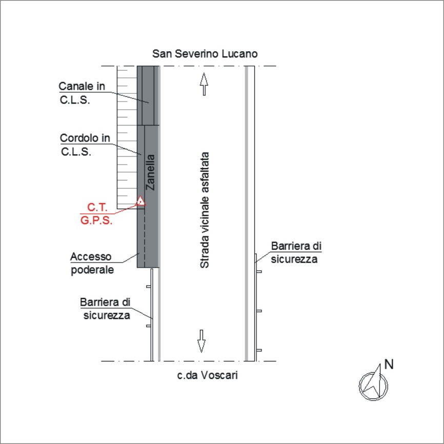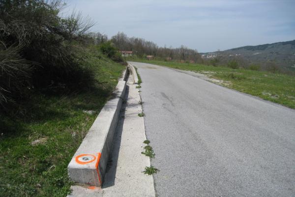 | materializzazione | Centrino orizzontale di tipo chiodo con rondella ARPAB Regione Basilicata infisso sul cordolo con zanella in C.L.S. |