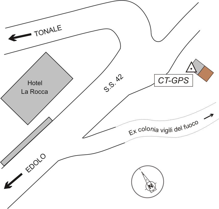 Centrino in acciaio inox del tipo "universale", infisso sulla piattaforma in cemento antistante un casottino, posto in corrispondeza dell'incrocio tra la S.S.42 e una strada secondaria.