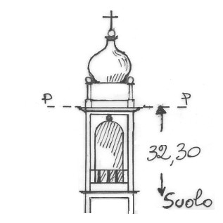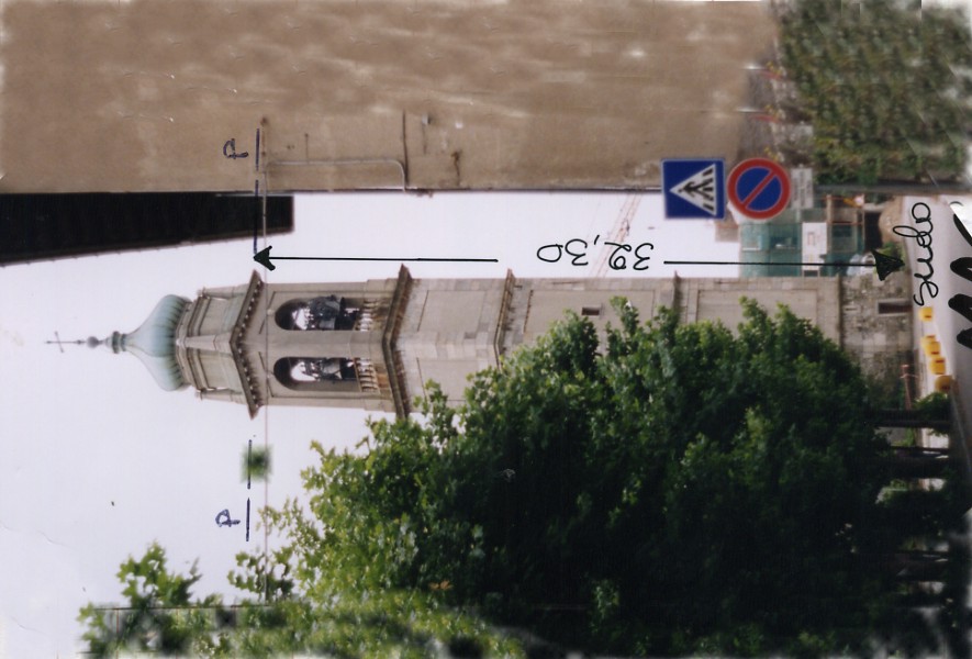 | Materializzazione | Campanile della chiesa parrocchiale. Asse geometrico del campanile. |