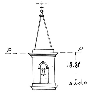 Campanile della chiesa parrocchiale. Asse geometrico del campanile.