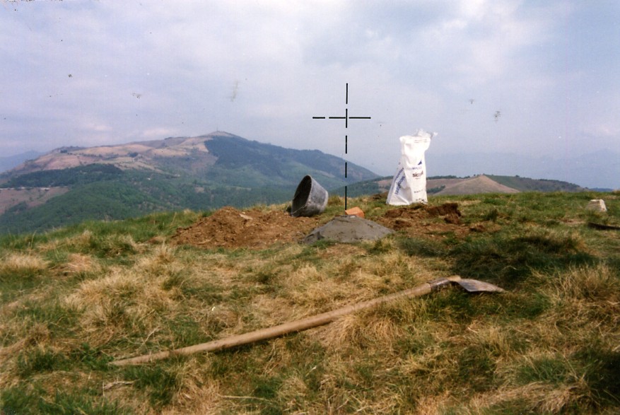 | Materializzazione | Sulla punta centrale del monte. Centrino di superficie cementato in blocco di calcestruzzo e sottostante centrino di fondo coassiale. Riferimenti: R1,R3 (picchetti in ferro) R2 (centrino). |
