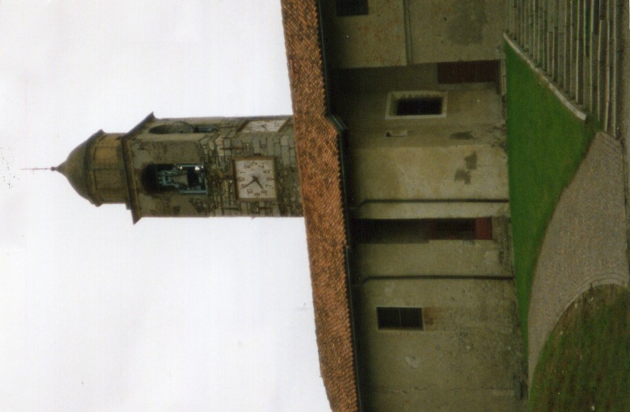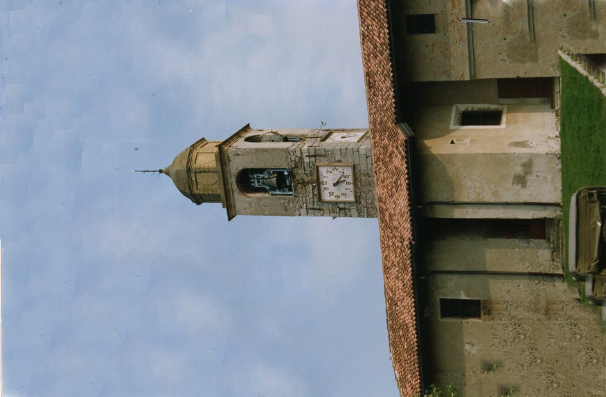 Campanile della chiesa parrocchiale all' estremità settentrionale e nella parte più elevata del paese. Asse geometrico del campanile.