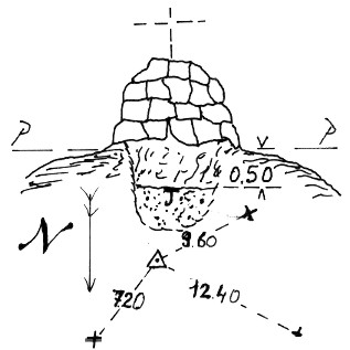 | Materializzazione | Segnale sul monte in prossimità dei ruderi di un vecchio oratorio. Centrino cementato a 50 cm. e sovrastante mucchio di pietrame. Riferimenti: come da pianta. |