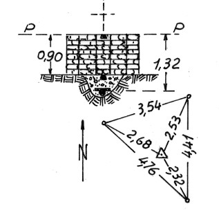Segnale sul monte prativo . Centrino di fondo interrato, centrino al livello del suolo e centrino di superfice alla sommità basamento in pietrame. Riferimenti : Tre centrini cementati su roccie affioranti.