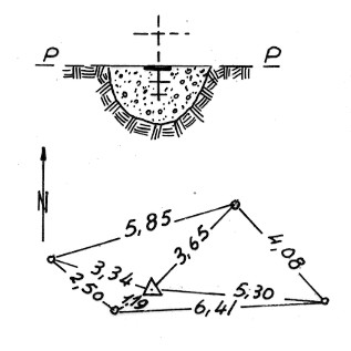| Materializzazione | Segnale sul monte. Centrino metallico di superficie. Riferimenti: Quattro croci incise e tinteggiate in nero. |