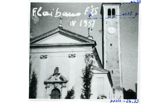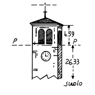 Campanile della chiesa del paese. Asse geometrico del campanile.