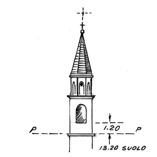 | Materializzazione | Campanile della chiesa parrocchiale. Asse geometrico del campanile. |