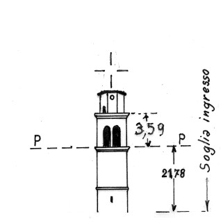 Campanile della chiesa di Santa Maria Assunta. Asse geometrico del campanile.