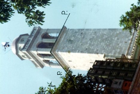 Campanile della chiesa Madre situata al centro del paese omonimo. Asse geometrico del campanile.