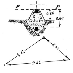 Segnale costituito da pilastrino, sul più alto dei cocuzzoli che formano il massiccio del monte omonimo. Centrini di fondo e di superficie cementati in conglomerato di calcestruzzo nell'incavo di una roccia. Riferimenti: due centrini cementati su roccie affioranti.