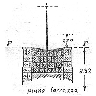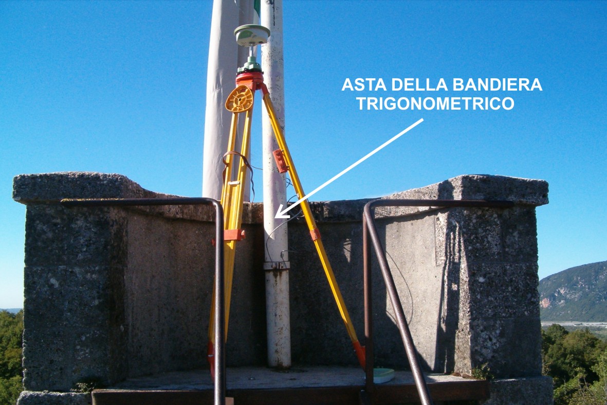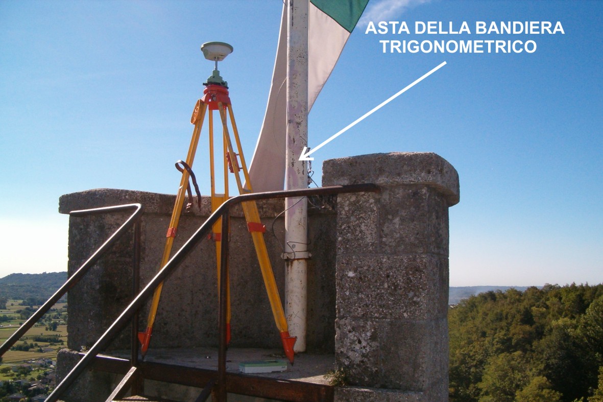 | Materializzazione | Asta portabandiera del monumento commemorativo del forte situato sul colle che domina il paese omonimo. Asse geometrico dell'asta. |