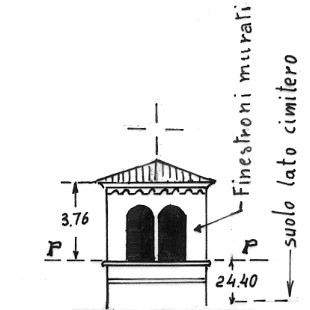 Campanile della chiesa dedicata a San Bartolomeo situata sull'altura dominante Fagagna in prossimità del cimitero. Asse geometrico del campanile.