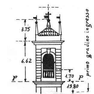 Campanile della chiesa del villaggio. Asse geometrico del campanile.