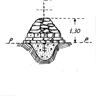 | Materializzazione | Segnale sulla punta Nord della catena omonima. Centrino di superficie sormontato da una piramide di massi. |