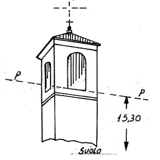 | Materializzazione | Campanile della chiesa parrocchiale. Asse geometrico del campanile. |