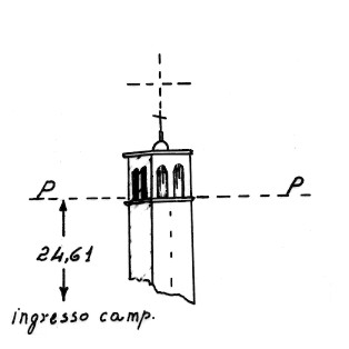 Campanile della chiesa parrocchiale della frazione omonima. Asse geometrico del campanile.