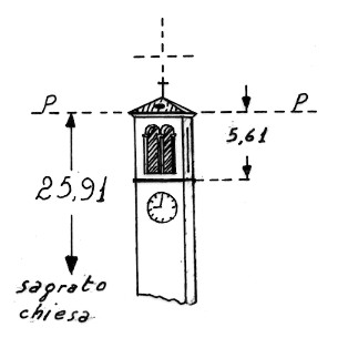| Materializzazione | Campanile della chiesa parrocchiale. Asse geometrico del campanile. |