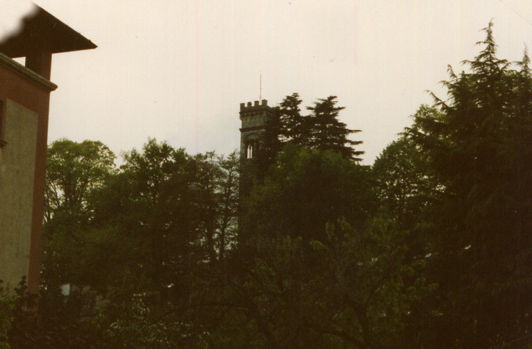 Torre dell' omonima villa sovrastante il paese dal lato Nord – Ovest. Asse geometrico della torre.
