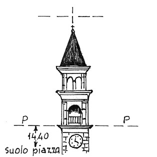 | Materializzazione | Campanile della chiesa parrocchiale. Asse geometrico del campanile. |