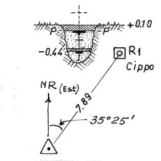 | Info ausiliarie | Altezza sommità del cippo (R1) sul P. P. =m. 2,15. |