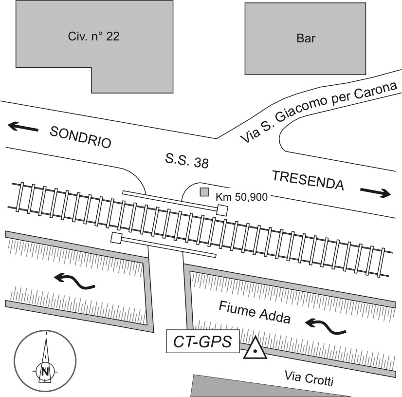 | materializzazione | Centrino in acciaio inox del tipo "universale", infisso sul muro d'argine del fiume Adda che si trova su Via Crotti. |