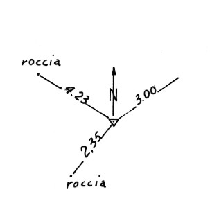 Segnale sulla cima del monte nei pressi di una grande croce in legno. Borchia cementata su roccia. Riferimenti: come da pianta